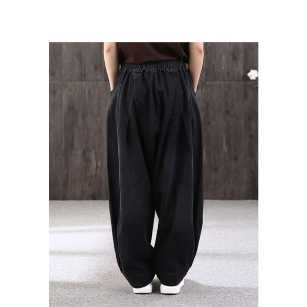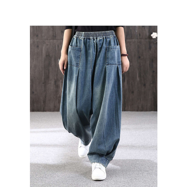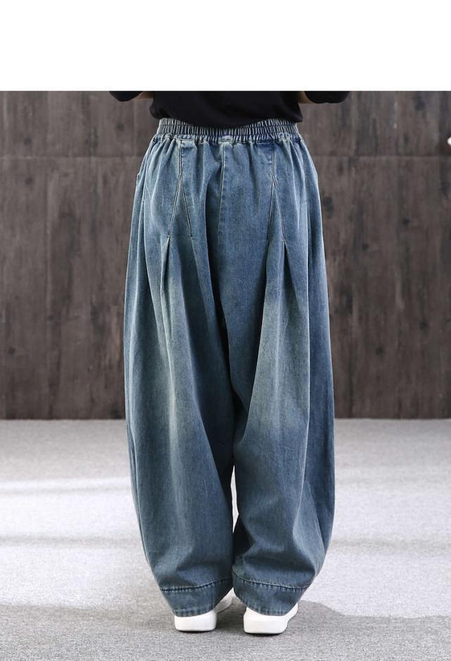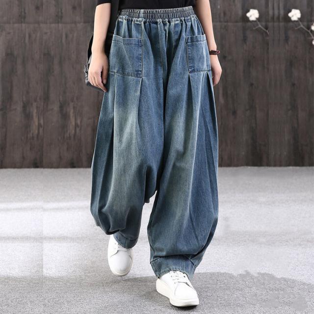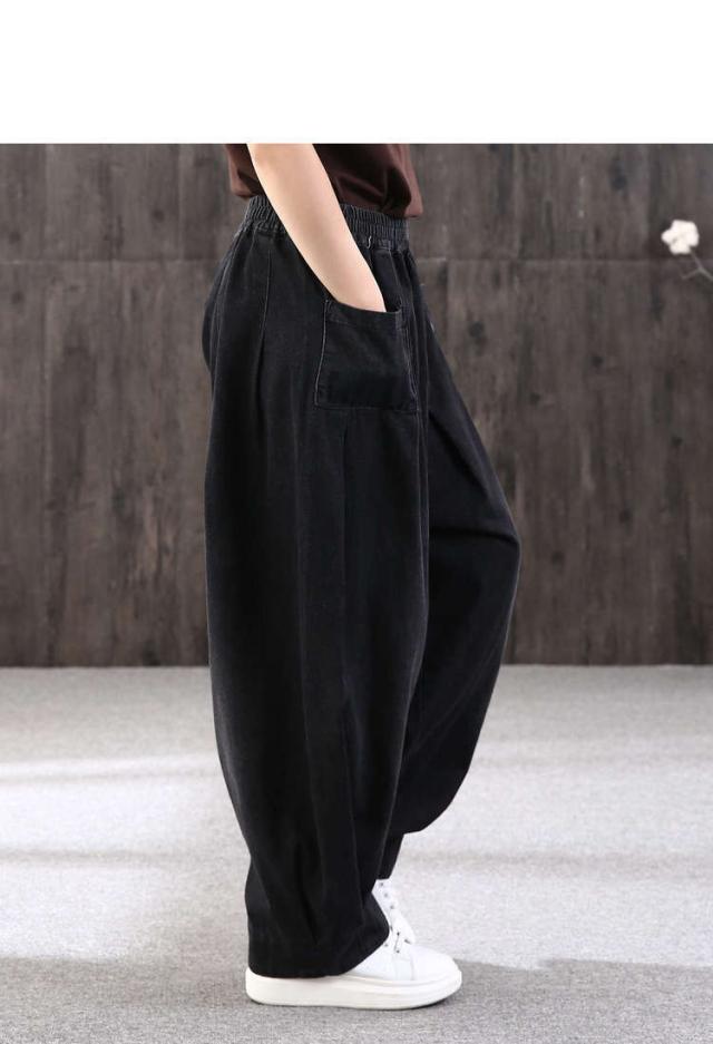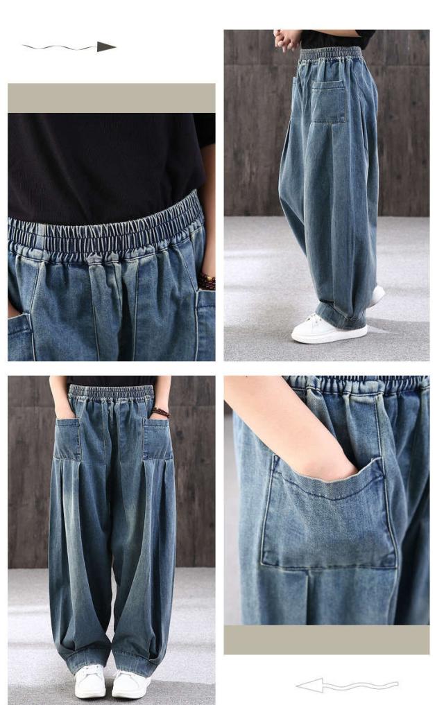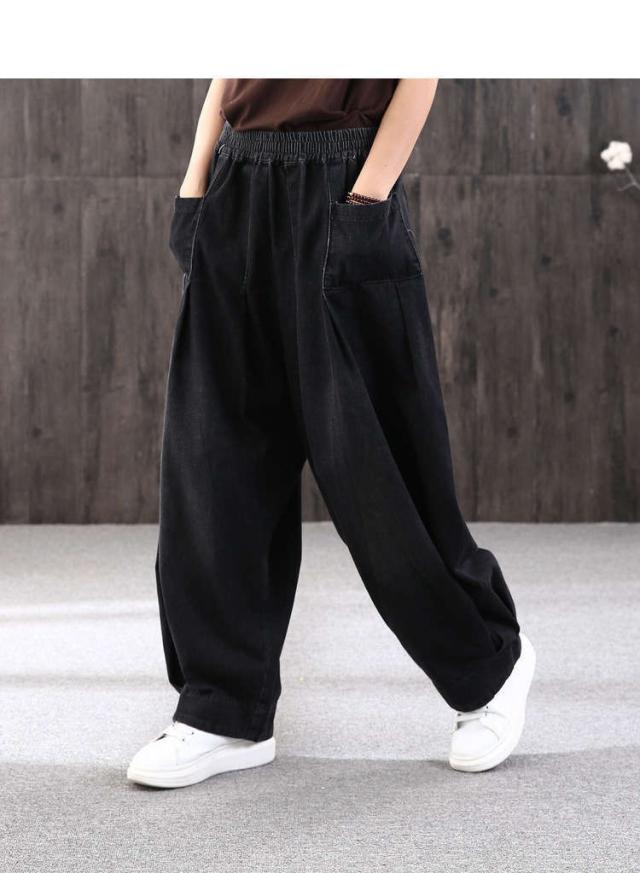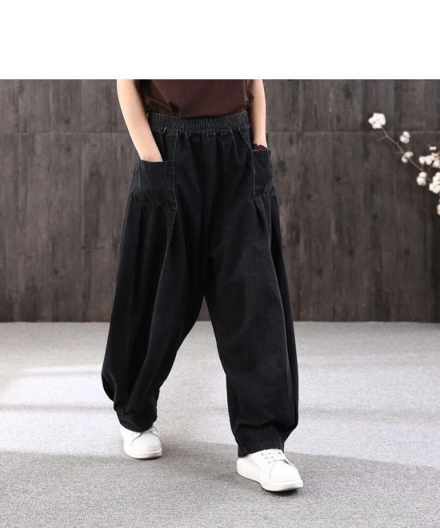 ロング丈 デニムパンツサルエルパンツ バルーンレディース パンツバルーンパンツ デニムゆったり ウェストゴムカジュアル ハレムパンツ