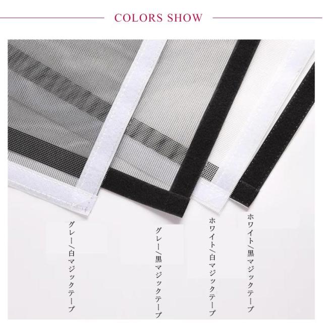 | 自分で手軽に設置できるマジックテープ式網戸。 トレイ、浴室、寝室など網戸が欲しい場所に簡単に取り付け可能。 メッシュで虫やホコリの侵入を防ぎながら、風通しがそのまま、電気代の節約にも◎ マジックテープ付きで、開け閉めもスムーズに♪ 汚れたら取り外し、洗濯できるからいつも清潔に。 | |