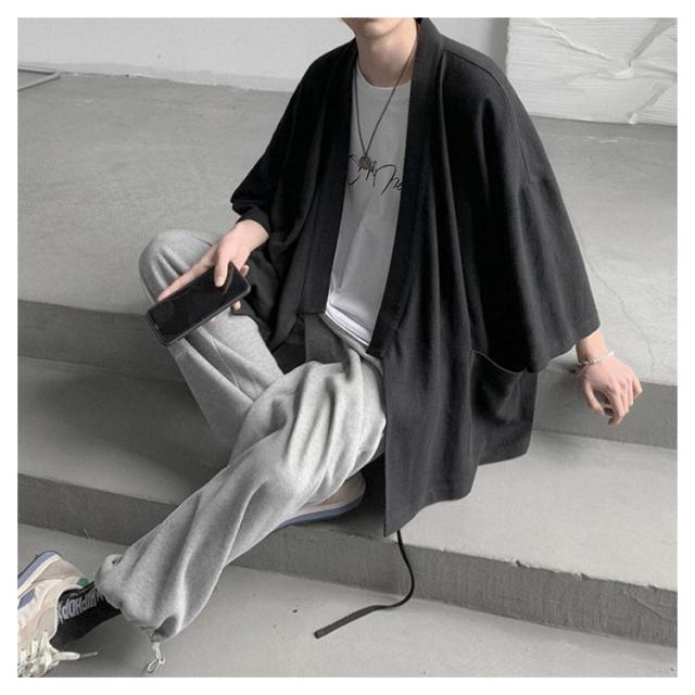 送料無料 サマーカーディガン メンズ 七分袖 和式パーカー トップス ジャケット 薄手 無地 和風 羽織 涼しい ゆったり カジュアル おしゃれ シンプル 大きいサイズ ポケット付き