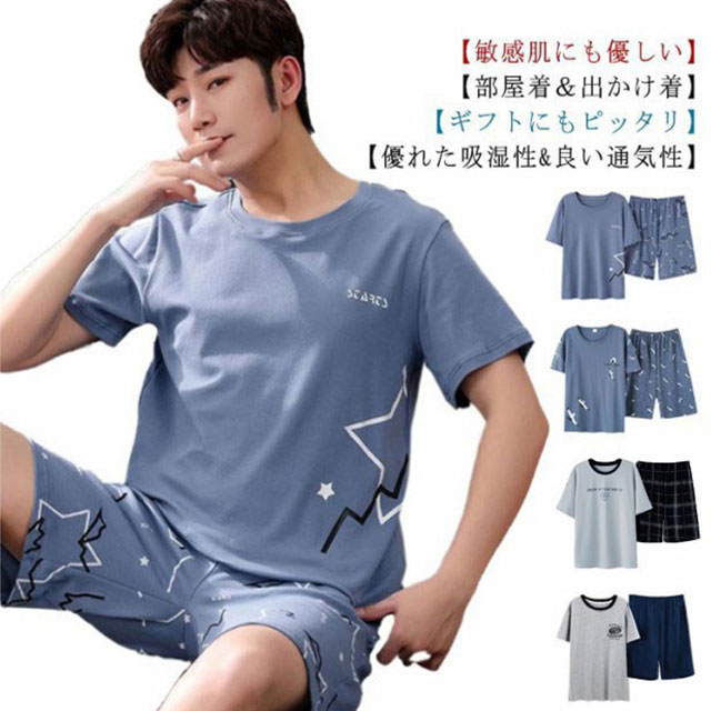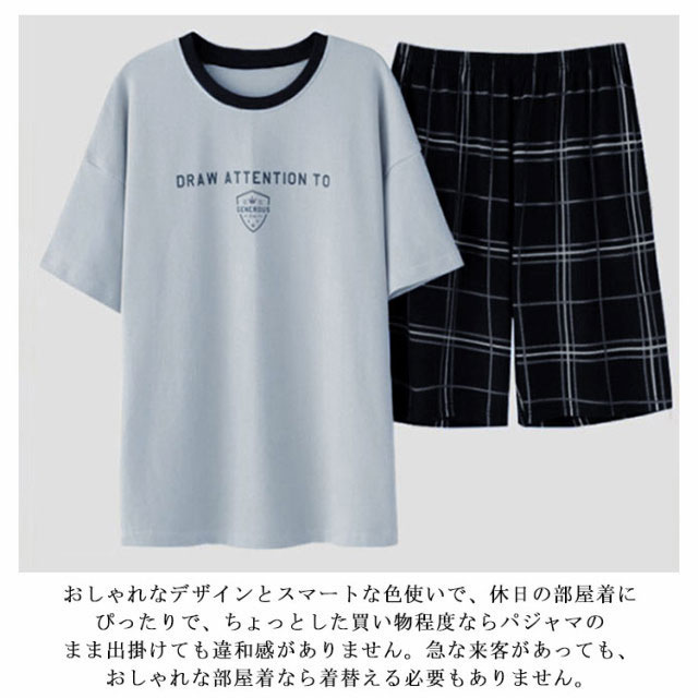 パジャマ コットン メンズ チェック 無地 半袖 半ズボン 綿 夏用 上下セット 肌触りがいい 涼感 春夏秋 ショートパンツ ルームウェア 部屋着 寝巻き 寝間着 大きいサイズ おしゃれ 大人 紳士 男性 夫 父の日 敬老の日 入院