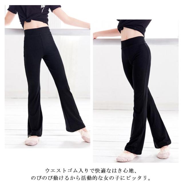 バレエムパンツ 女の子 ロングパンツ フレアパンツ ボトムス ダンスパンツ 女児 長ズボン 子供用 ジュニア ルームウェア ウエストゴム 日焼け防止 冷房対策 通気 ゆったり ストレッチ 薄手 動きやすい 送料無料
