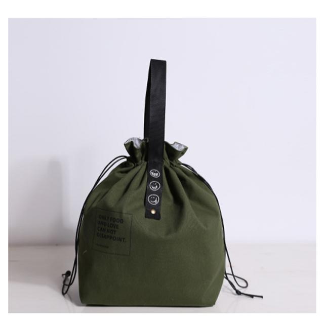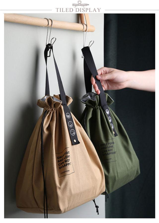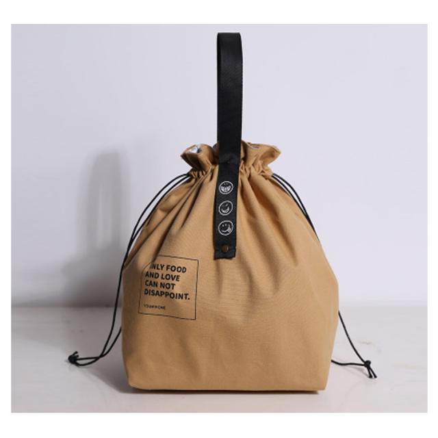 | おしゃれでシンプルな使いやすい巾着袋タイプのランチバッグ。 広口で出し入れしやすし、使わないとき折りたたんで持ち運びも便利。 丈夫なキャンバス生地を採用し、耐摩擦性・耐久性に優れています。 内側はPVCシートで、保温にも保冷にも使いやすく、汚れても簡単に拭き取れます。 ゆとりのある形なので、お弁当はもちろん、果物や飲み物も入れることができます。 男女、子供問わず、学校、オフィス、キャンプなどさまざまな場面に適しています。 ちょっとしたお買い物のエコバッグとしても便利です。 | |