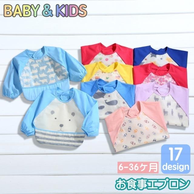 お食事エプロン ベビー キッズ 子供 男の子 女の子 スモック スタイ よだれかけ ポケット付き 食べこぼしポケット 長袖 防水