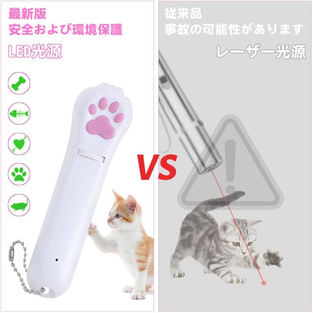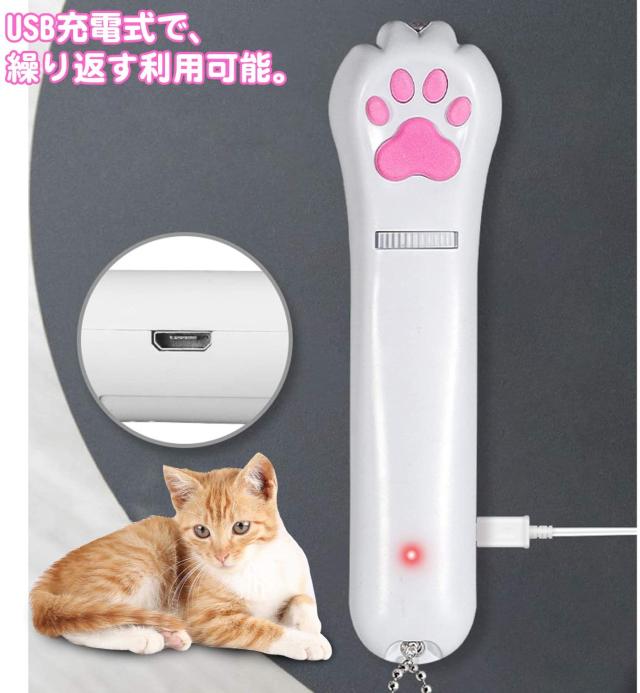 猫 ペットおもちゃ LED UVライトレーザーポインター LEDポインター ペット 猫グッズ 猫じゃらし 猫用おもちゃ 犬 USB充電 ペット用品 猫の運動不足を改善 ストレス解消 肉球タイプ
