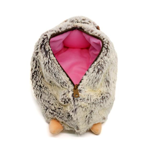 ふわふわのはりねずみのぬいぐるみペンケースは、肌触りも良くて近くにおいておくだけで癒しになりますよ。ペンケースの内側は明るいピンクの生地で出来ていてチラッと見えるとかわいいです。