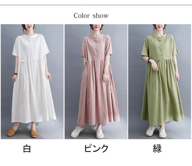 シャツワンピース 夏ワンピ ロング レディース 袖あり おしゃれ ファッション 春夏 カジュアル 大きいサイズ 体型カバー ゆったり 大きめ きれいめ 大人 日常 母の日 プレゼント ギフト 30代 40代 50代 白 緑 ピンク M L 2L 3L dt118t2t2la