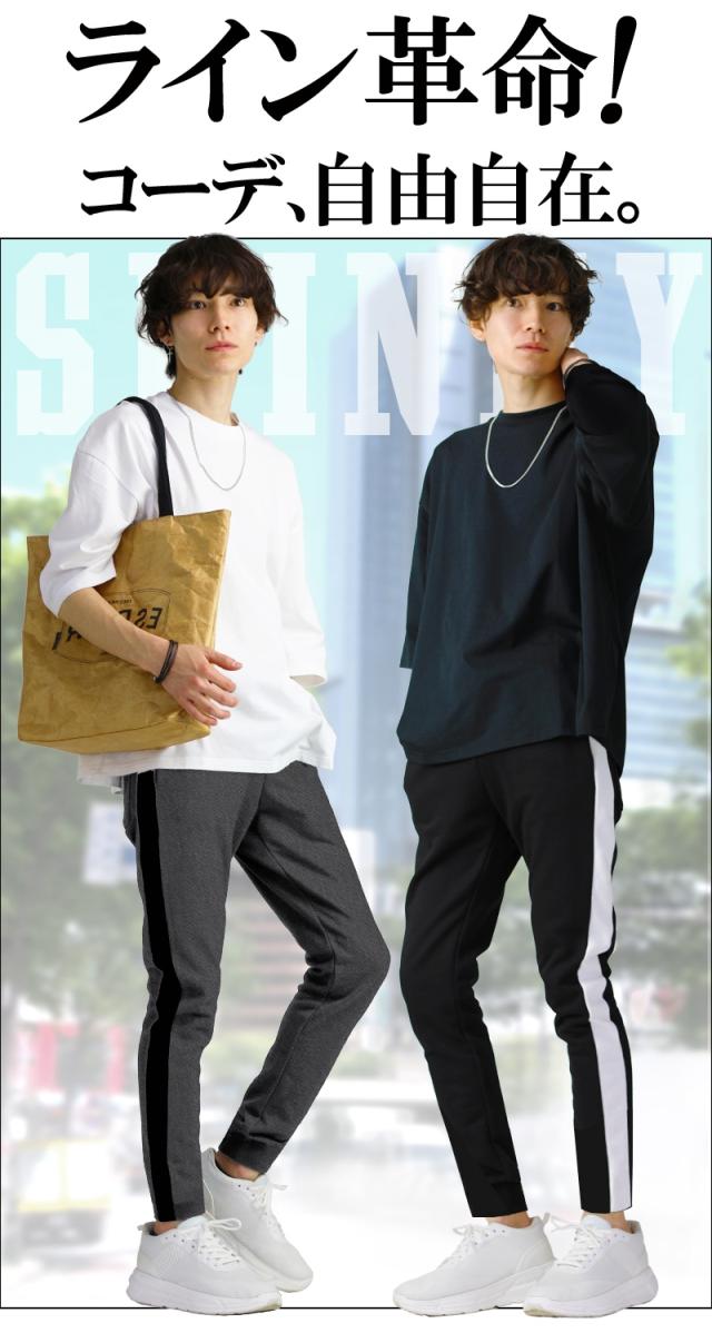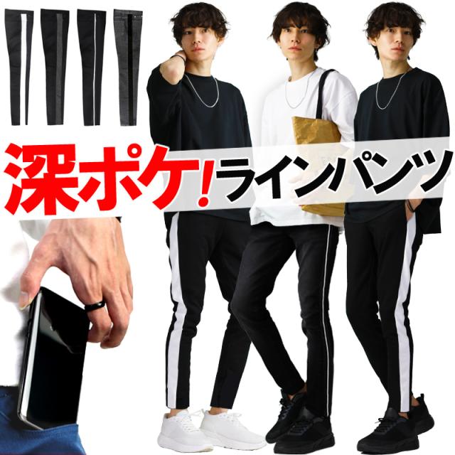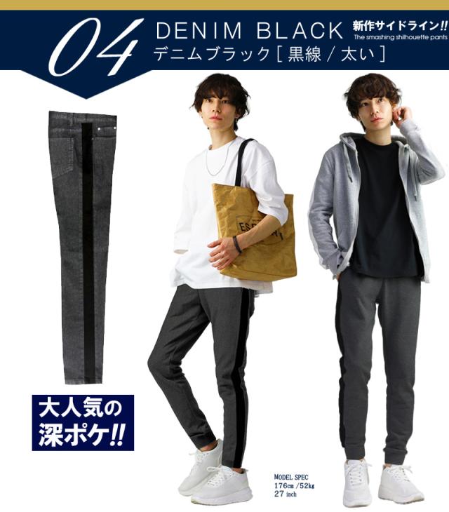 ラインパンツ メンズ スキニー サイドライン パンツ ストレッチ デニムパンツ デニム おしゃれ【f1085】