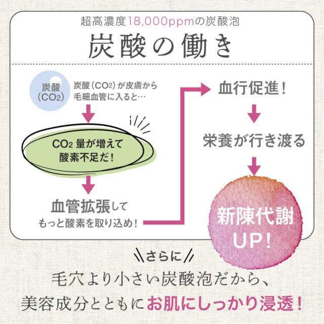 Wの有効成分を配合し、高濃度炭酸の力でさらに肌へ浸透!