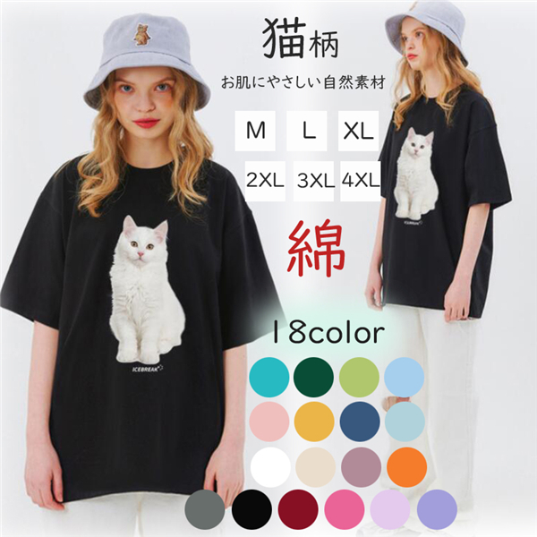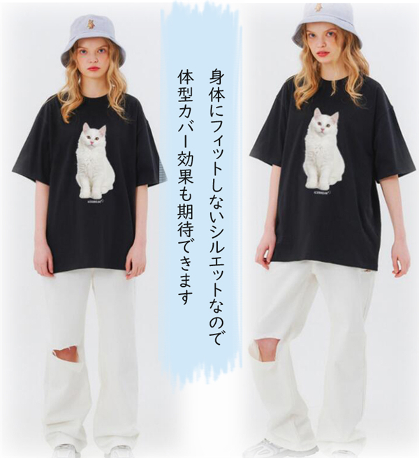 レディース Tシャツ 猫 tシャツ 猫柄tシャツ ネコ柄 五分袖 レディース メンズ 半袖 ドロップショルダー 猫グッズ ねこ かわいい トップス プレゼント ビッグシルエット ルームウェア