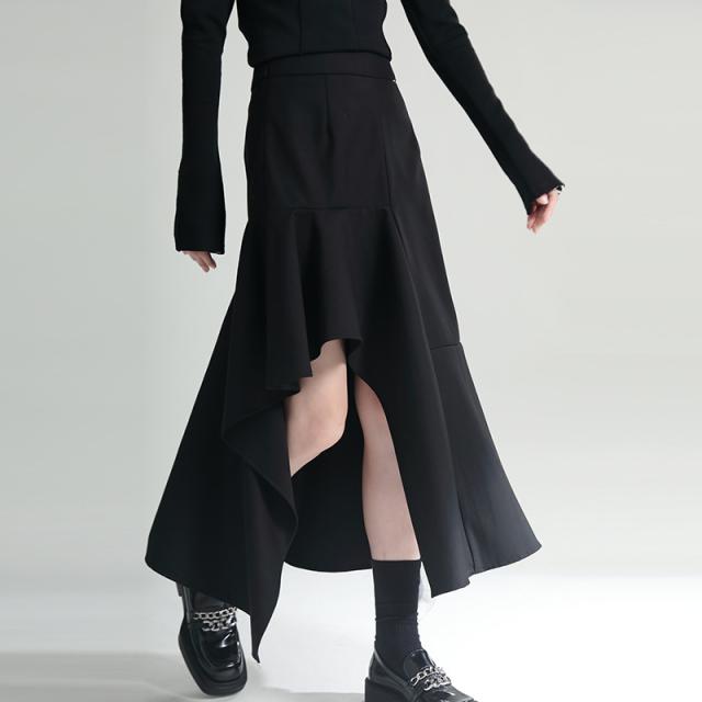 スカート レディース ロング 個性的 不規則 アシンメトリー ボトムス Aライン フレア モード系 大人 女子 きれいめ 黒 20代 30代 40代