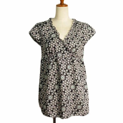 【中古】メルローズ クレール melrose CLAIRE カットソー ブラウス 花柄 カシュクール フリル 4 黒 レディース