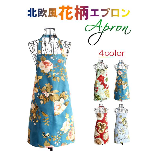 エプロン 母の日 花柄 レディース エプロン 花柄エプロン レディースエプロン かわいいエプロン 首掛け 後ろ結び エプロン 北欧 ワークエプロン