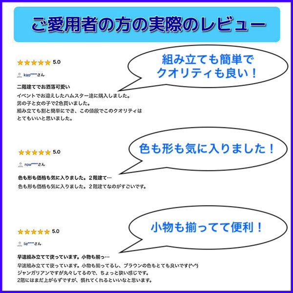 - 実際に飼っているハムスターも問題なく楽しんでると思います。