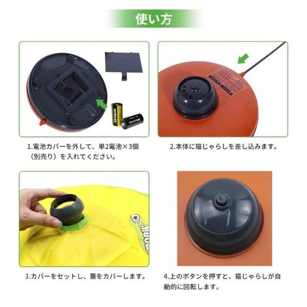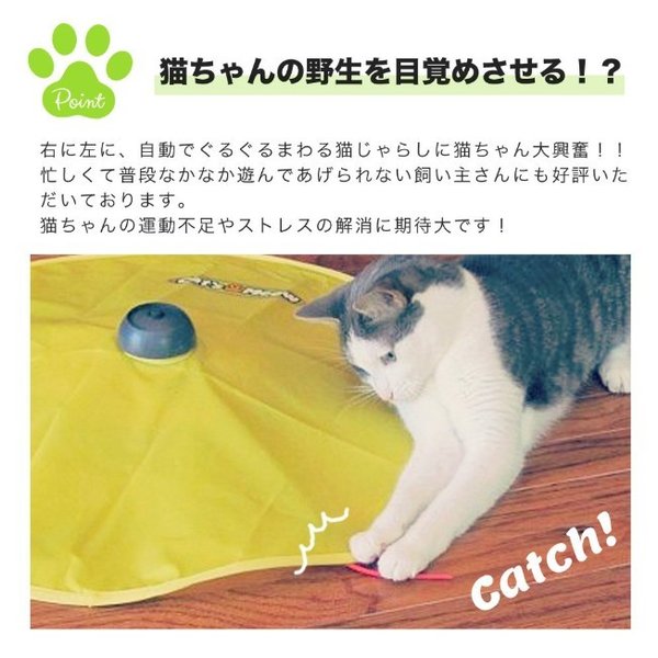 くるくると回転する猫じゃらしがねずみのしっぽのように見え夢中で追いかける猫おもちゃです。つかめそうでつかめない動きがネコちゃんの好奇心をくすぐり、飽きることなく遊んで抱けます。