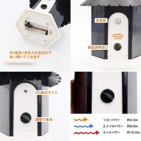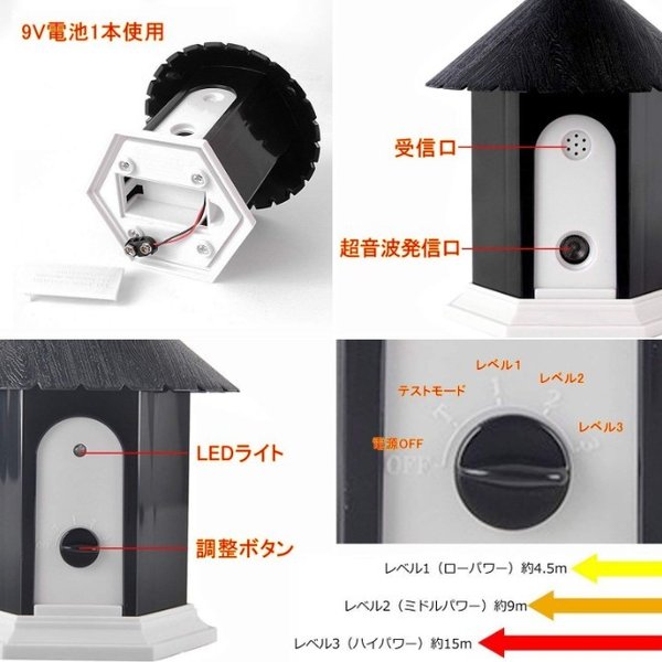 ・ローパワーからハイパワーまでの3段階で、超音波の強さの調整が可能です。設置場所や環境に合わせて超音波の強さを調整出来ますので、しつけの段階や具合によってご使用下さい。