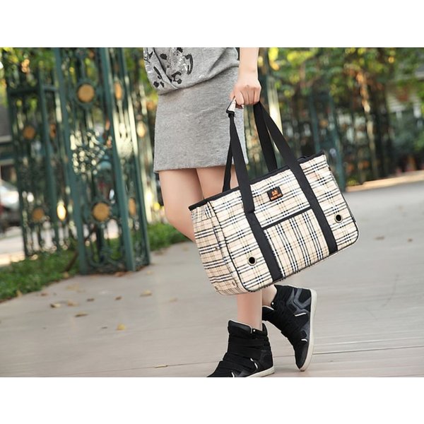 ・実用性はもちろん持ち運ぶときにもおしゃれな、チェック柄トートバッグタイプで、ちょっとした ドライブ お散歩 電車移動 病院 へ連れて行く際にもおススメです。