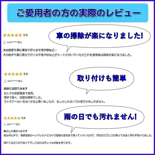- ペットの抜け毛が洋服に付いたまま乗車したりするので車のシートには いつもペットの毛が付いていたりしていて新車を買ったのを機にこちらの防水シートを取り付けました。新型タントの後部座席には多少サイズは大き...