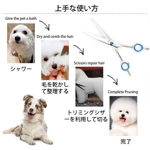 ・トリミングのハサミは切れ味の良いステンレス製で毛足の長い ワンちゃん ネコちゃんでも思い通りのカットが可能です。