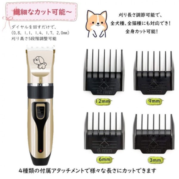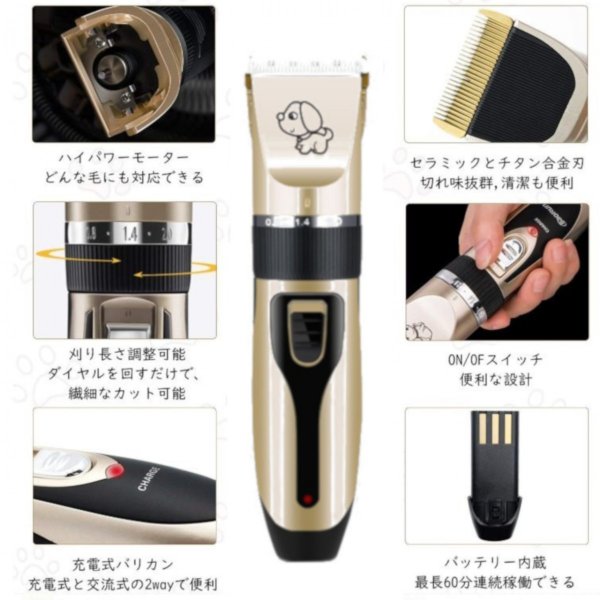 犬 バリカン ペット 猫 ウサギ トリミング 電動バリカン 充電式 シェーバー コードレス 足裏 顔 初心者 セルフトリミング 散髪 静音 軽量 犬用バリカン 猫用バリカン はさみ シザー アタッチメント付属 家庭用 全身カット グルーミング 安心 送料無料 日本語説明書付