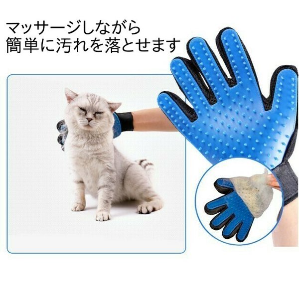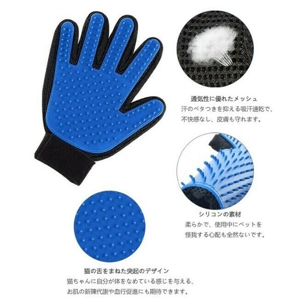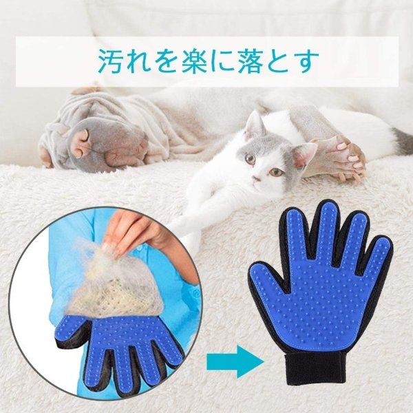 ・両手を使える手袋タイプで、撫でてあげるだけで簡単にお手入れすることができます。軽く撫でてあげるだけで、抜けた毛や不要な老廃物を驚くほどキャッチしてくれます。