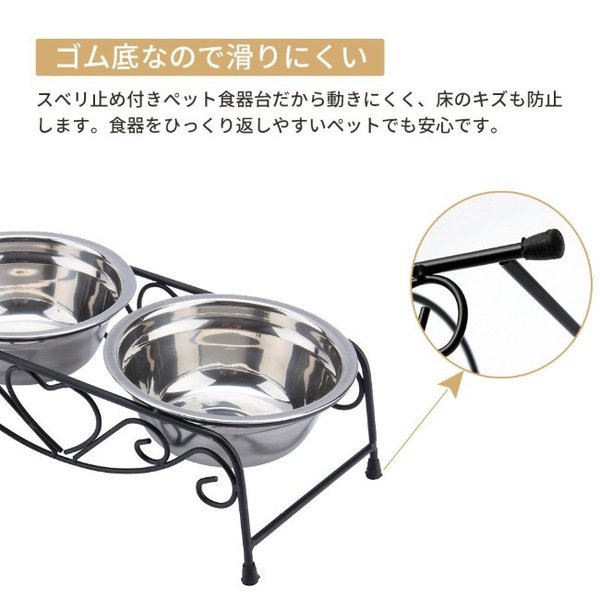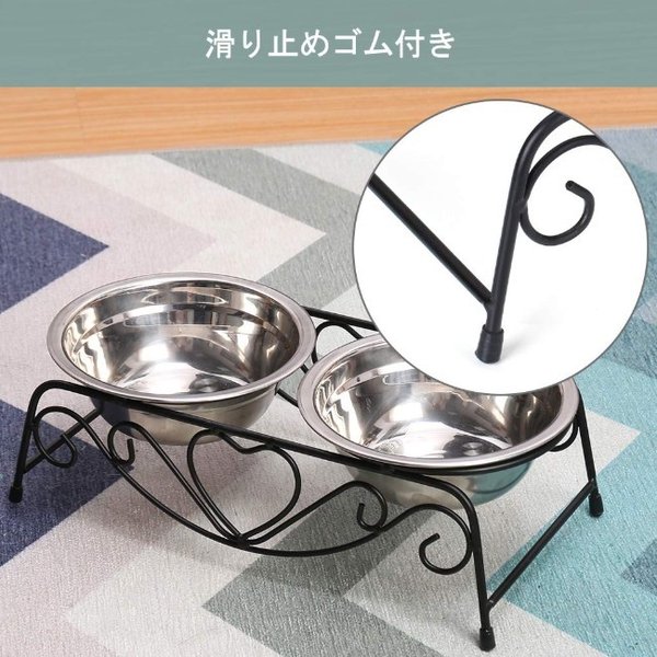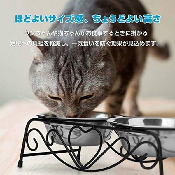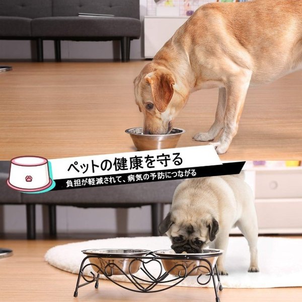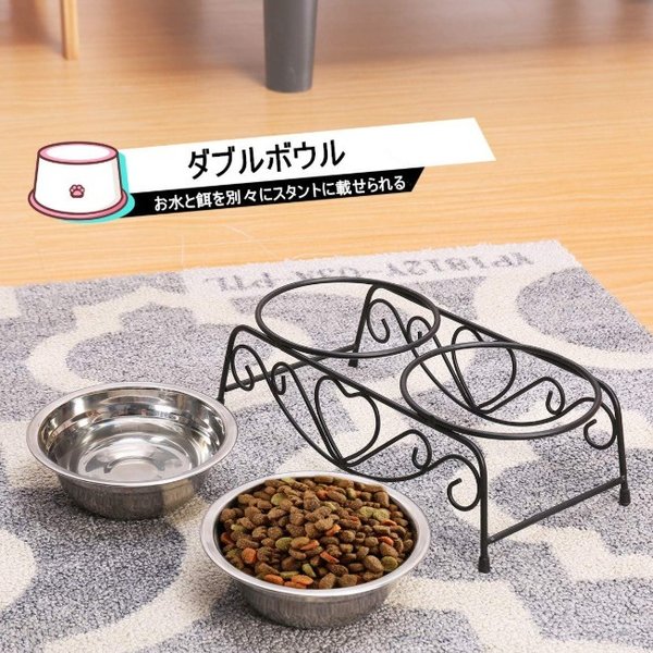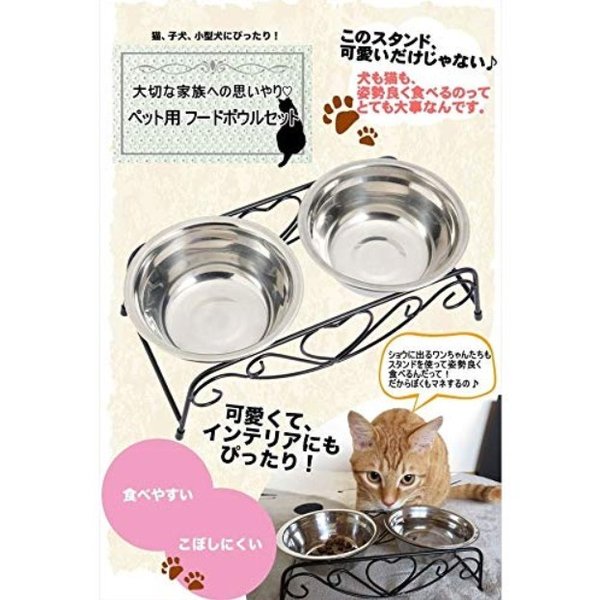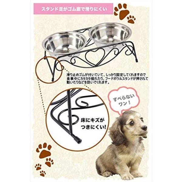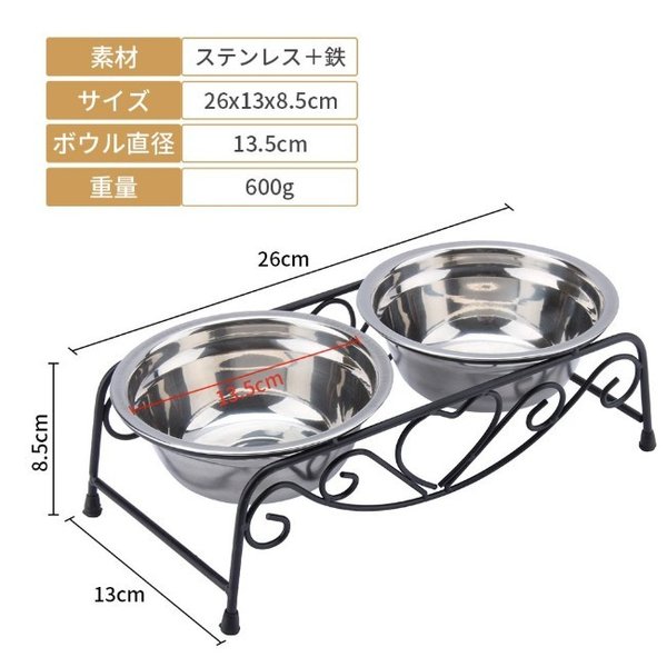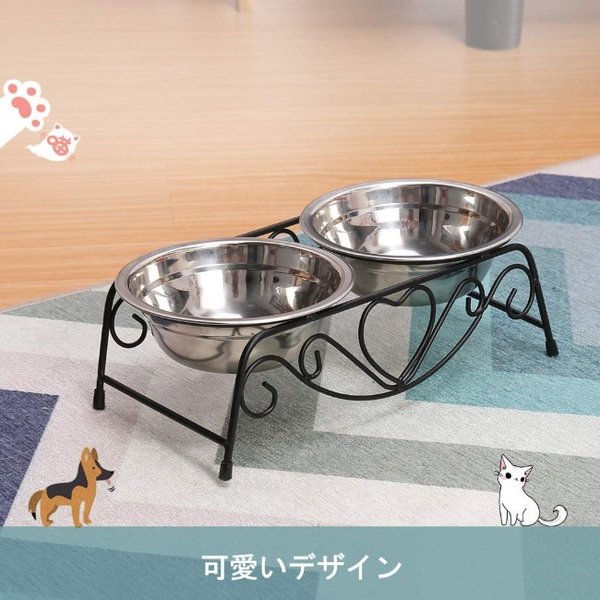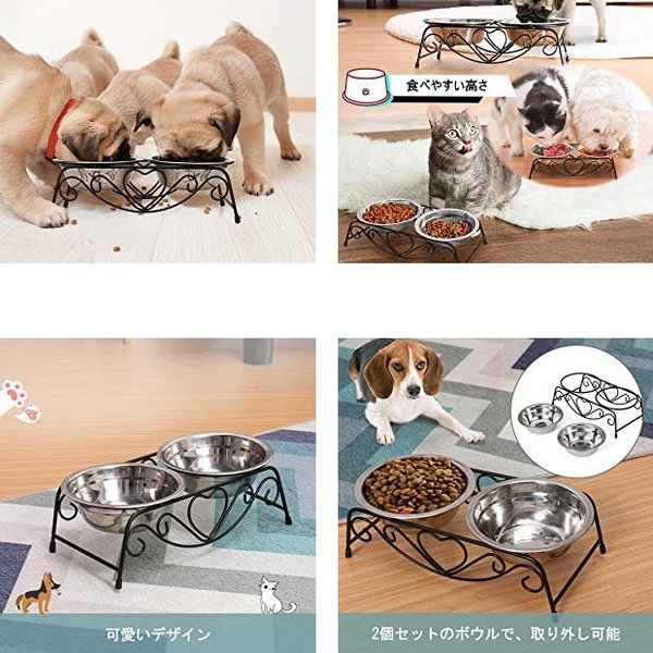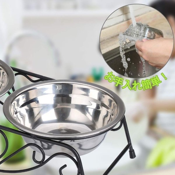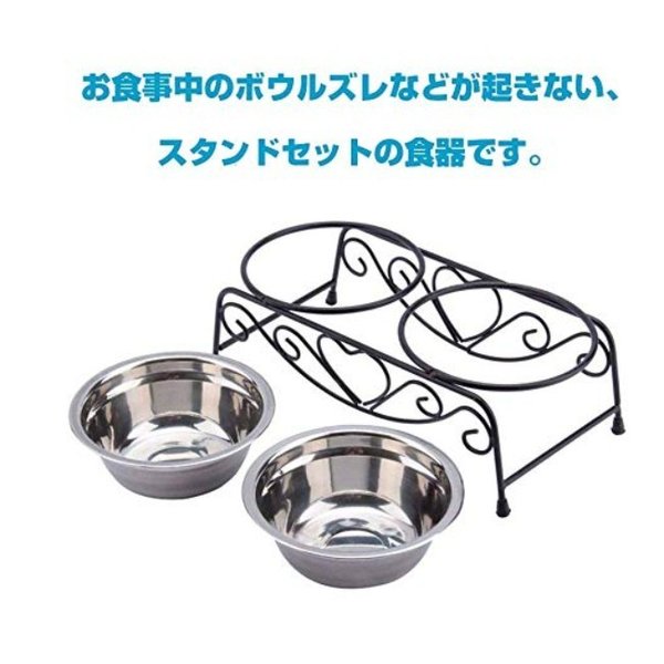・ステンレス製なのでサビにくく耐久性も抜群です。フードの食べ残しなども水でサッと洗い流すことができお手入れが簡単です。 ・ペットボウル×2とスタンド1つのセットです。