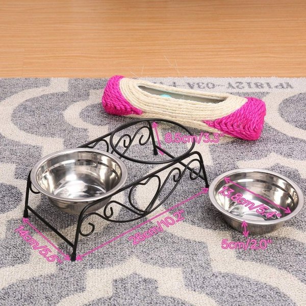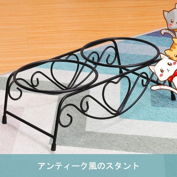 ・ステンレス製のボウルが2個横並びに設置できますので、フードとお水、または2種類のフードを組み合わせたりと自由に設置して頂けます。二つのボウルに加えシンプルでかわいいスタンド付きなので、インテリアとしてもおしゃれなお部屋になじみます。