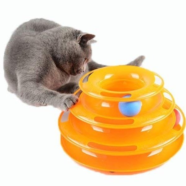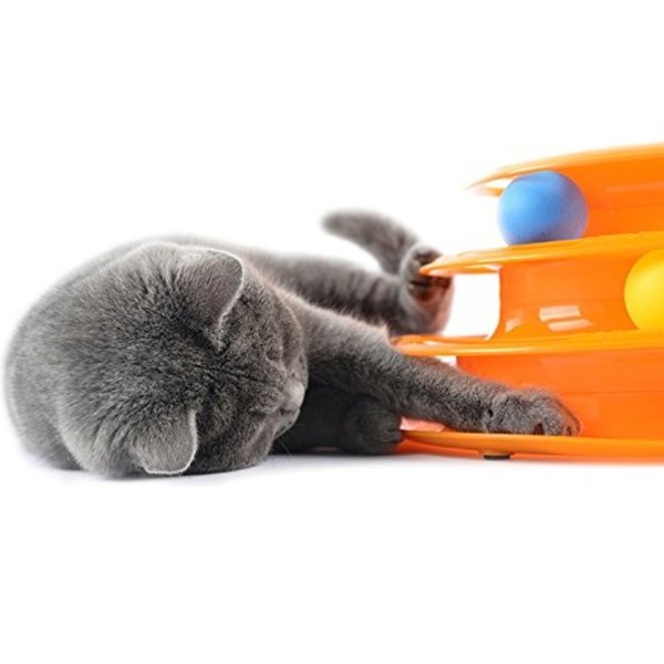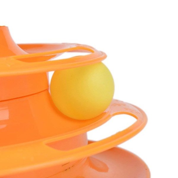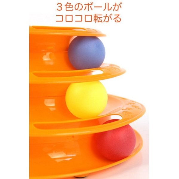 転がって走るボールに猫ちゃんも大興奮です。タワーの中を転がるボールを必死に追いかけるため、室内飼いの猫ちゃんの運動不足とストレスを解消することにも役立ちます。