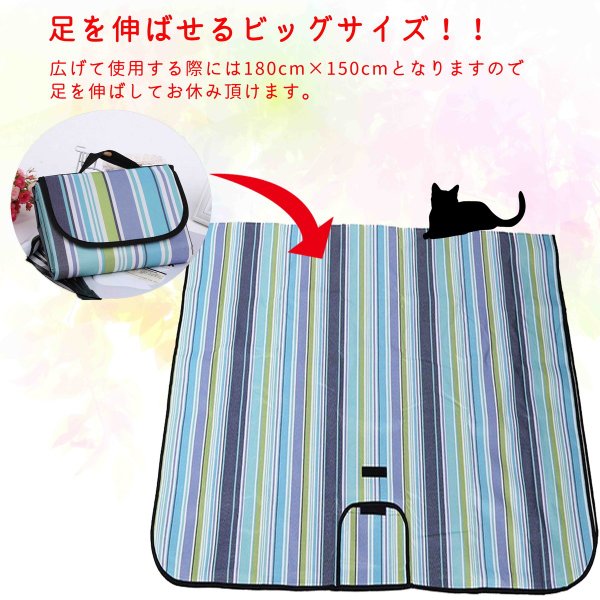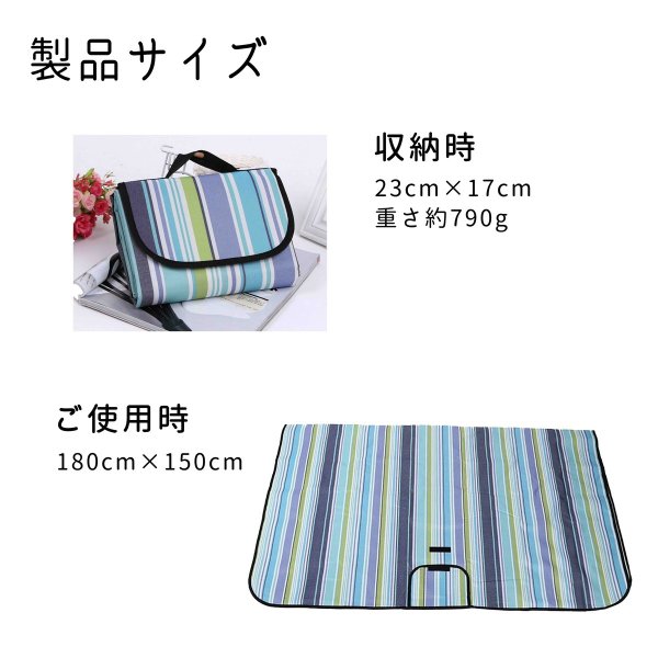 ・折り畳み時には23cm×17cmと軽量コンパクトですが、広げた使用時には縦横180cm×150cmになり、男性の方でも足を伸ばしてお休み頂けます。 通常の折りたたみレジャーシートよりも大きいので、横になってお休み頂くことも可能です。座ってのご使用ですと大人4〜5人でもご使用頂けます。
