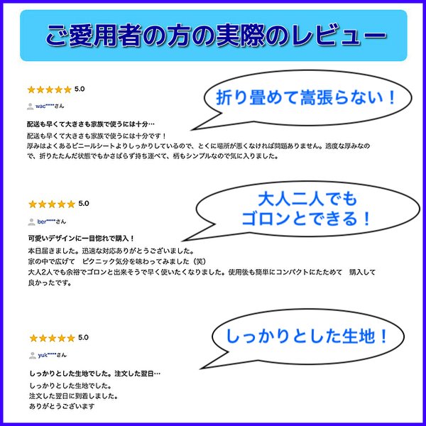 - 注文した翌日に届きました。シートは厚手と言うよりぺらぺらではなぃ程よい厚さ。逆にあまり厚手だと折り畳んだ時にがさばるので大きさ、重さ的にちょうど良い。