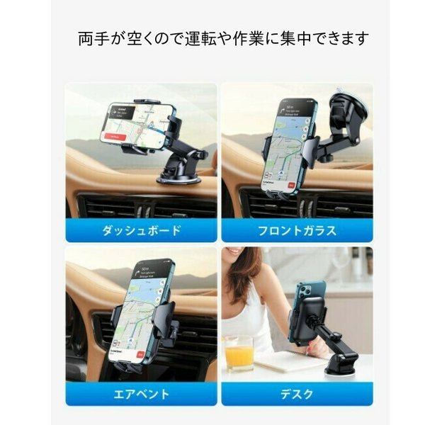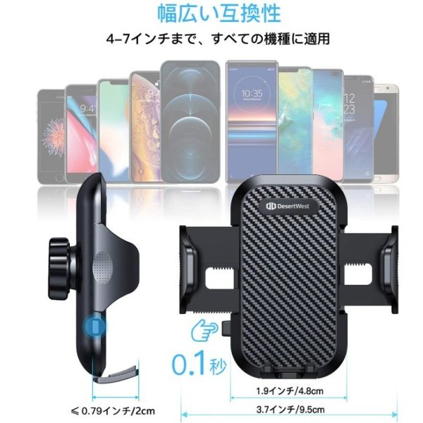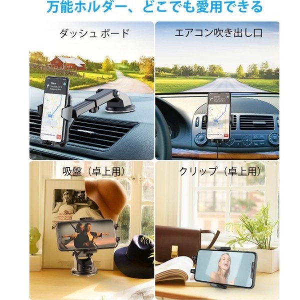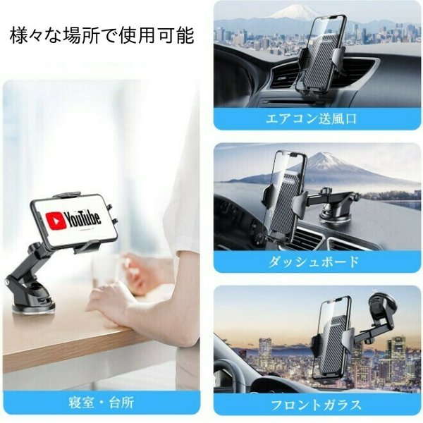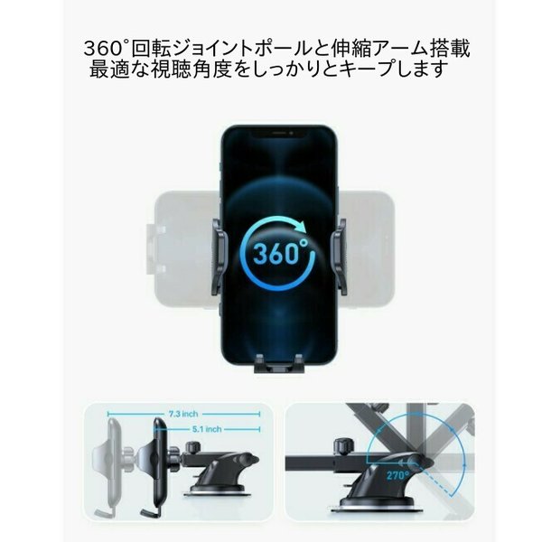 ・本車載スマホホルダーは360度回転するボールジョイントを採用しており、横でも縦でもスマホを自由に操作できます。電話ホルダーは、アーム部分が伸縮可能となっており、スマホの最適な視野角度を調整できます。