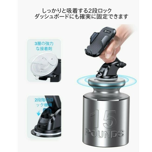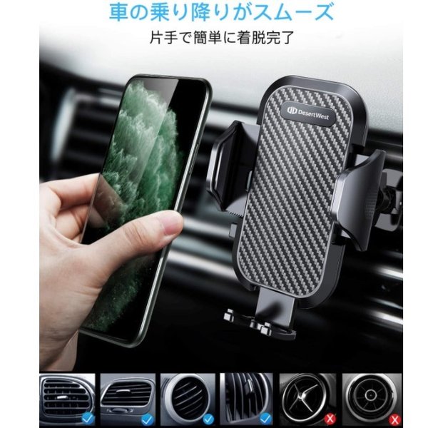 ・真空ゲル吸盤が隙間を作る事なくダッシュボードやフロントガラスにしっかりと吸着し、固定することができます。エアコン吹き出し口にも取り付けることも出来ます。