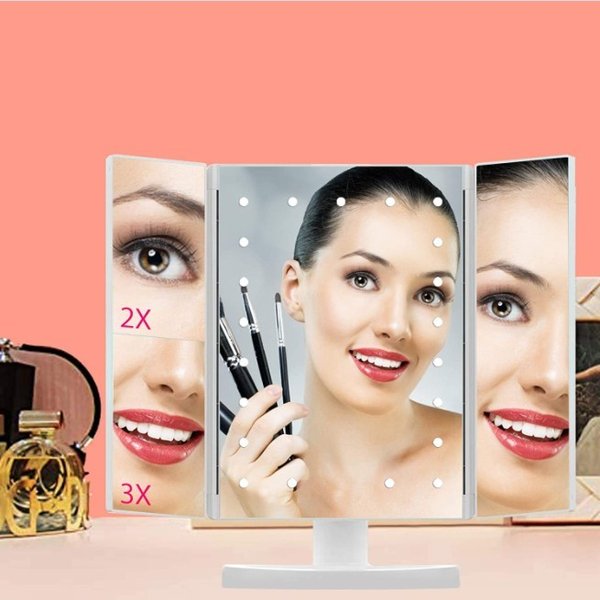 卓上ミラー 大きい おしゃれ LED 折りたたみ ライト付き 拡大鏡付き 調節 女優ミラー 卓上 ドレッサー 三面鏡 大型 ライト 卓上鏡 卓上鏡台 丸 女優鏡 化粧鏡 化粧ミラー 携帯用 メイク道具 LEDミラー 洗面所 鏡 メイクアップ ヘアセット プレゼント ギフト クリスマス 誕生日 入学祝い 母の日 ホワイトデー