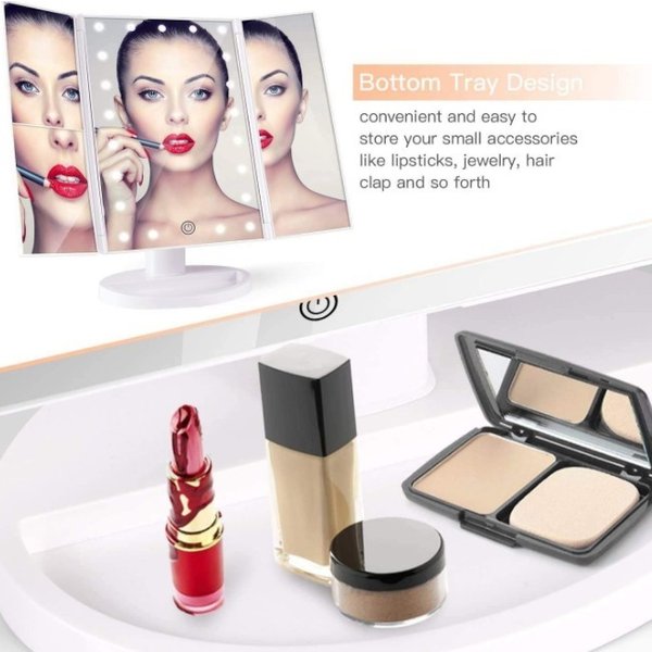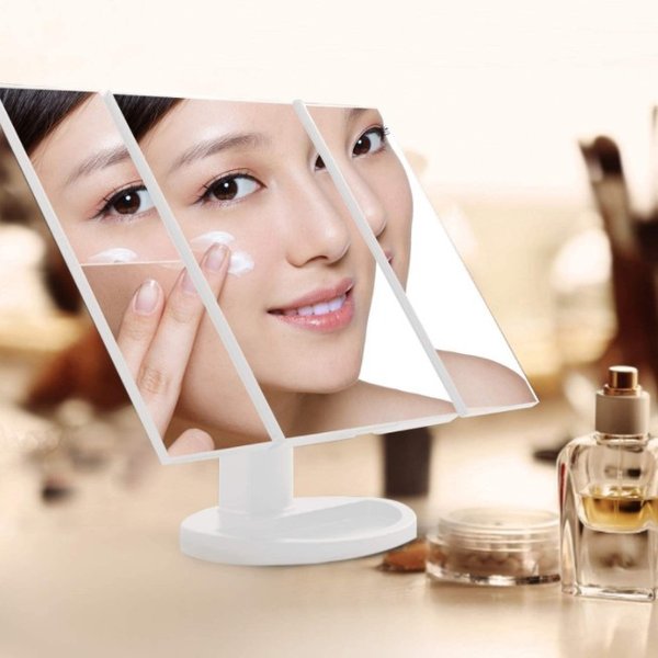 ・鏡に内蔵された21個のLEDライトが明るく照らしてくれますので、暗い場所や光量の弱い場所での使用に非常に役立ちます。LEDライトが均等に顔を照らすことで、影をなくし、化粧ムラ防止になります。