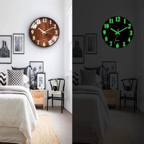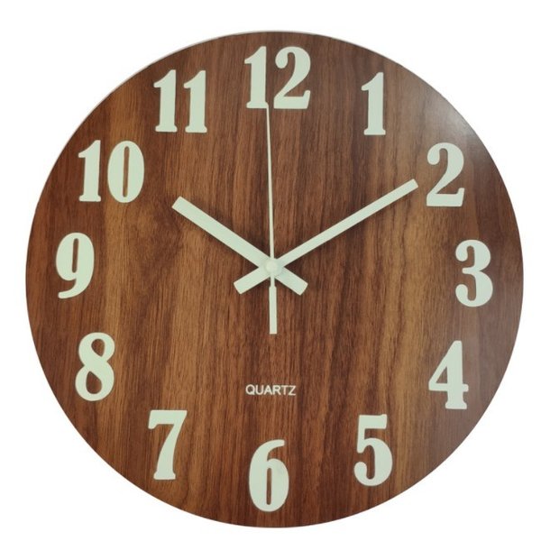 ・蛍光塗料付きとなっており周囲が暗くなると、指針とインデックスが光るため、夜間や暗い場所への設置でも、時間が見やすい設計です。文字が大きくて読みやすいので、お年寄りや子供でもしっかり時間が読み取れます。