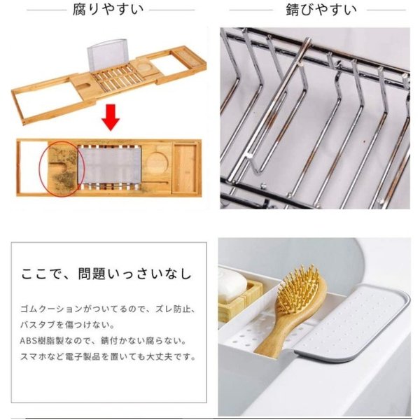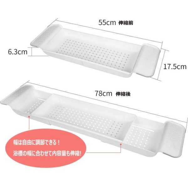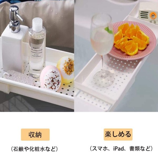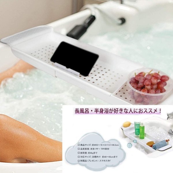 ・長さの調整ができるので、様々なバスタブにご使用頂けます。幅55〜78cm、耐荷重は4kgまでです。 スマホ iPad タブレット 書類 ワイングラス 化粧品 などを置くことができます。