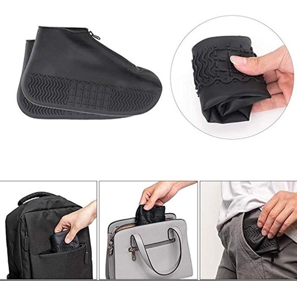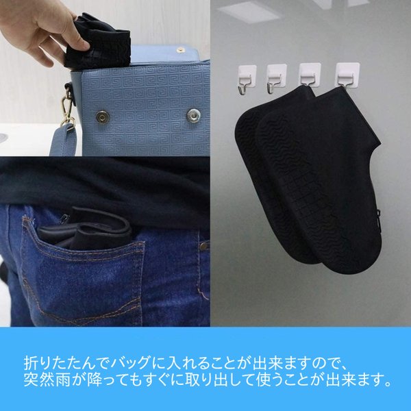 ・コンパクトに折り畳むことができ、バッグや鞄に入れても邪魔にならずいざという時に安心です。伸縮素材のため靴とカバーに隙間ができにくく、雨の日も軽快な歩き心地です。またファスナー設計のため、脱着もスムーズにでき便利です