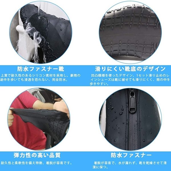 シューズカバー 防水 雨 シリコン 靴カバー 雨用 滑り止め 雪 レインカバー 靴 自転車 バイク 泥除け レインブーツ ショート おしゃれ 軽量 雨靴 長靴 メンズ レディース 子供 キッズ 軽い 通勤 通学 作業用 防水ファスナー シリコンシューズカバー アウトドア 防水靴カバー