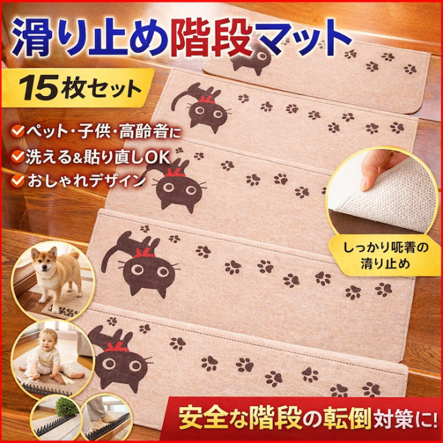 階段マット 滑り止め おしゃれ 折り曲げ 15枚 北欧 猫 玄関マット 屋内 大判 屋内用 大きめ 業務用 汚れ 洗濯 お手入れ簡単 防音マット 壁 床 カットできる 子供 ピアノ カーペット 6畳 3畳 2畳 ラグ 洗える 厚手 ラグマット フローリング 犬 猫 階段マット 転倒防止 吸着マット 油 傷防止マット 家具 滑り止めマット 介護 お風呂 すべり止めマット