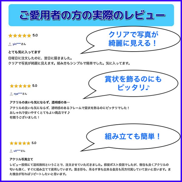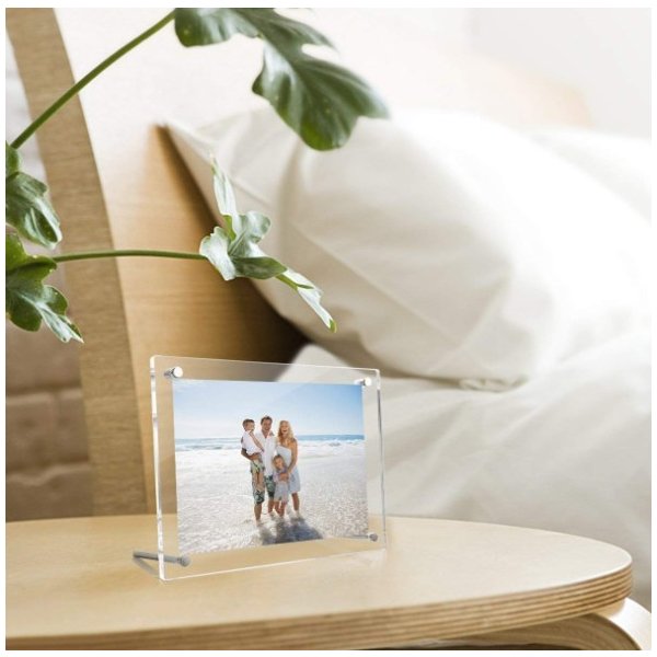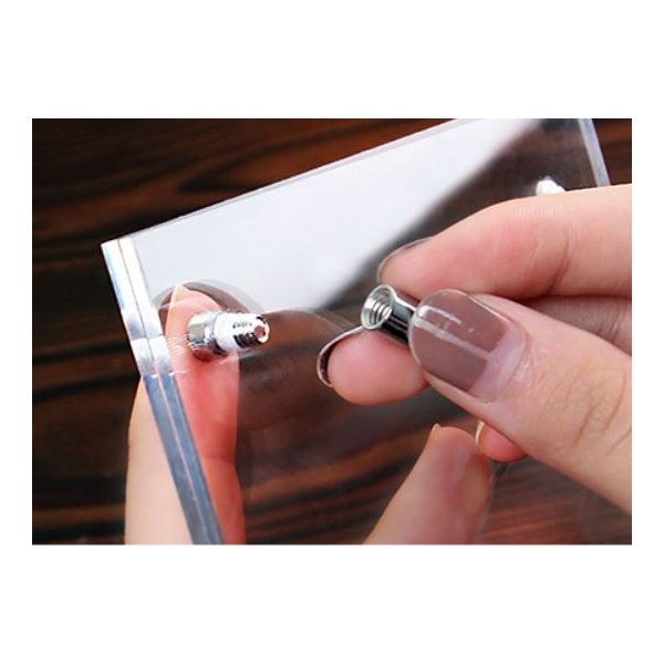 【組立簡単】:(1)二枚アクリル板で写真を挟む。 (2)付属品ネジで二枚アクリル板を止める。