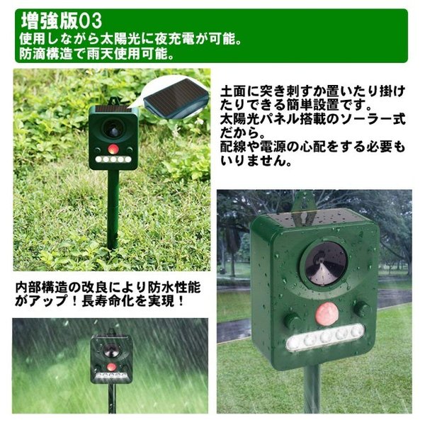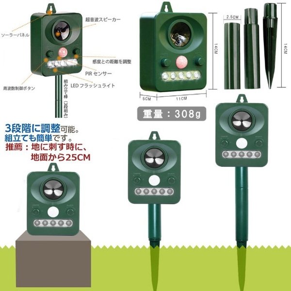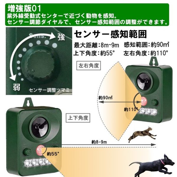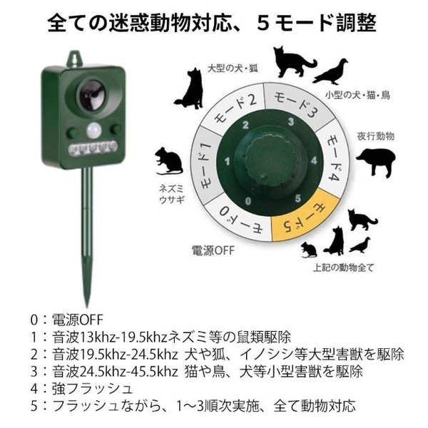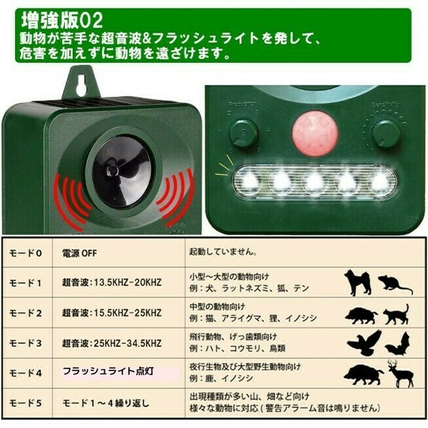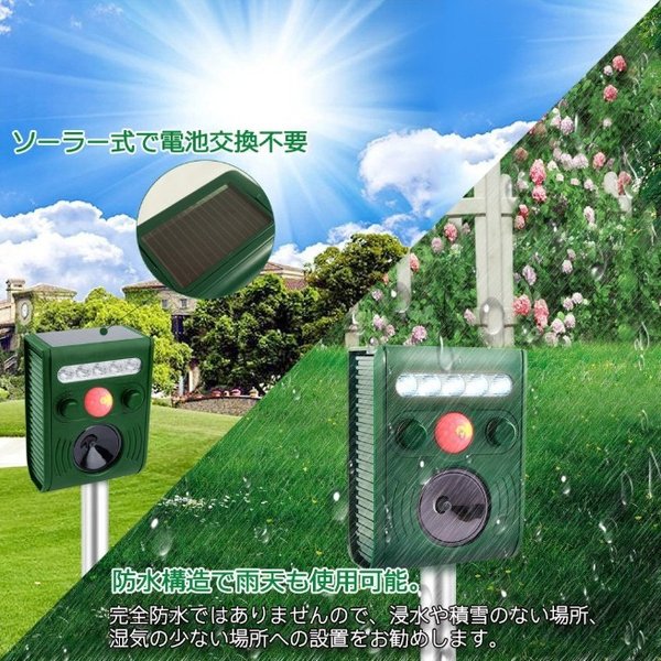 猫よけ 超音波 フラッシュライト 強力タイプ ソーラー 庭 動物撃退器 猫除け 猫対策 猫退治 猫よけグッズ カラスよけ 猫撃退センサー 音 ソーラー充電 害獣撃退 野良猫 糞尿対策 鳥獣対策 フラッシュライト 防鳥 ねずみ駆除 鳥よけ アニマルバリア 日本語説明書付 5段階