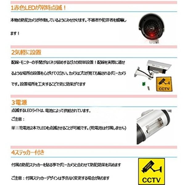 防犯カメラ 屋外 室内 ダミー カメラ 家庭用 ダミーカメラ 屋外用 防犯 LED 点灯 電池式 防犯用ダミーカメラ 監視カメラ セキュリティ 留守 不審者対策 防犯対策 セキュリティカメラ フェイクカメラ 暗視カメラ 不審者 威嚇 留守を守る 安心 偽装カメラ 2個セット