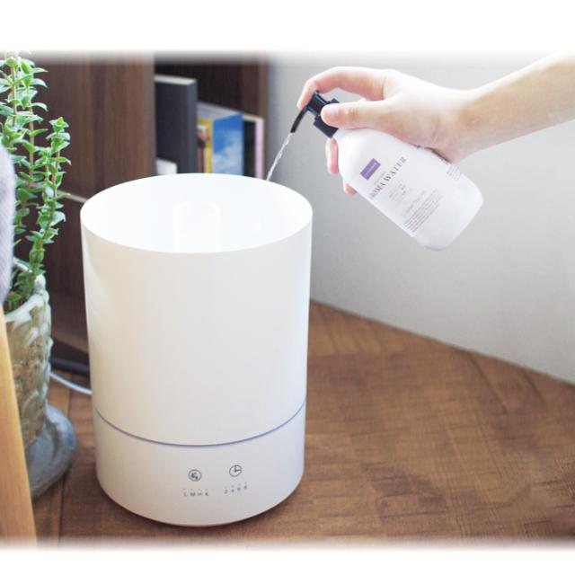 超音波加湿器のタンクの水に2〜3プッシュするだけでウイルス対策も、アロマの香りで癒しの空間づくりも叶えます♪