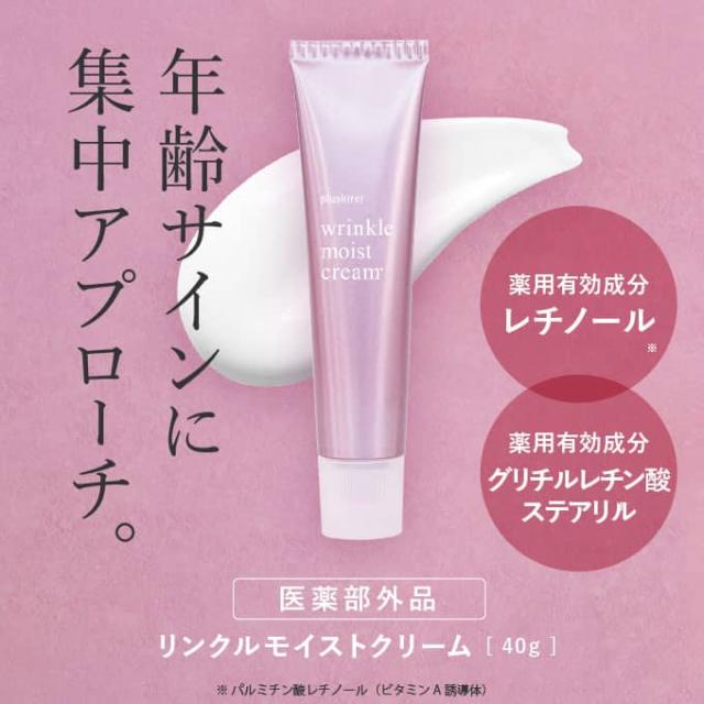 | 効果・効能 | ▼リンクルモイストクリーム 皮ふの乾燥を防ぐ /ニキビを防ぐ / 肌あれ、あれ性/ 油性肌 / 日やけ・雪やけ後のほてりを防ぐ / 肌をひきしめる / 肌を清浄にする / 肌を整える / 皮ふをすこやかに保つ / 皮ふにうるおいを与える / 皮ふを保護する / あせも、ひび、あかぎれ |