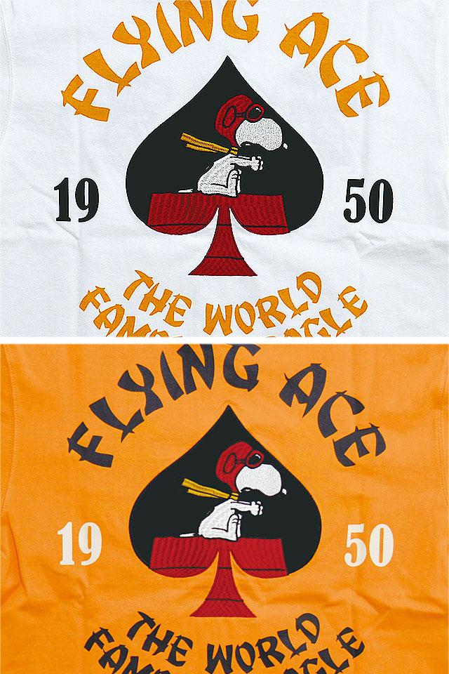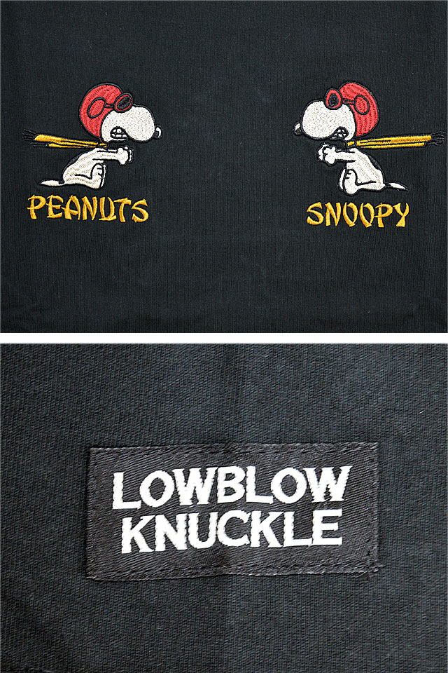 ロウブロウナックル×スヌーピー SPADE FLYING ACE Tee ロウブロウナックル 582401 刺繍 ピーナッツ ミリタリー
