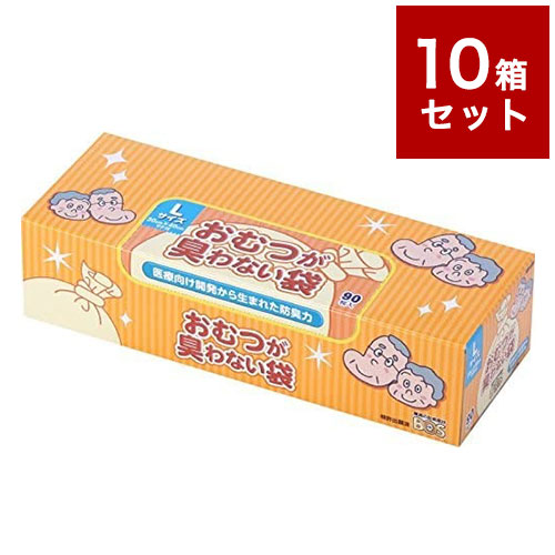 【10個セット】 おむつが臭わない袋 BOS 大人用 Lサイズ 90枚入り 箱型 クリロン化成 ボス【送料無料】