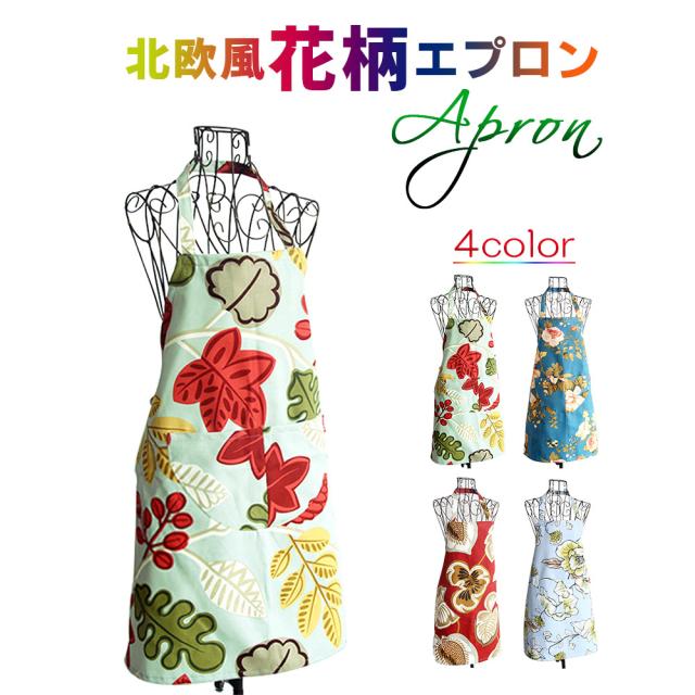 エプロン 母の日 花柄 レディース エプロン 花柄エプロン レディースエプロン かわいいエプロン 首掛け 後ろ結び エプロン 北欧 ワークエプロン