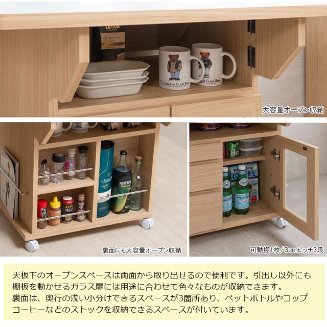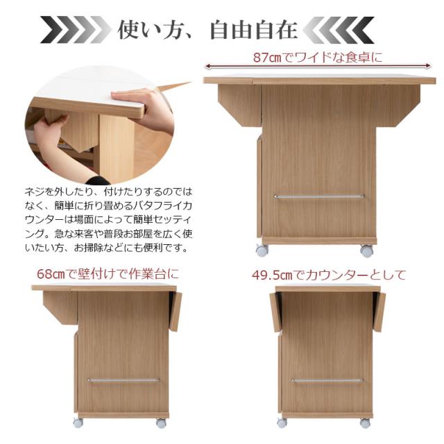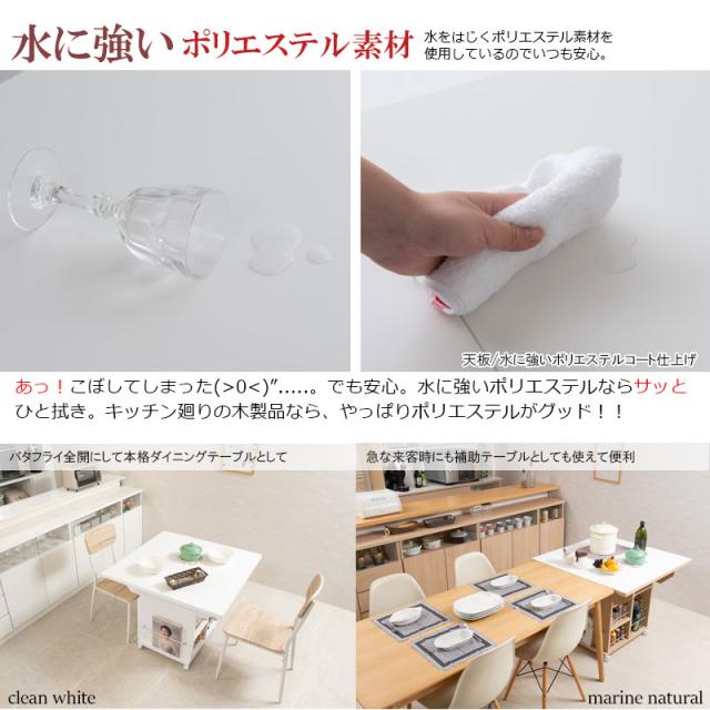 日本製 完成品 大川家具 Butter 幅89.5 高さ70 テーブル バタフライカウンター ナチュラル キッチン収納 おしゃれ 茶 リビング キャスター付き バタフライワゴン 国産(代引不可)【送料無料】