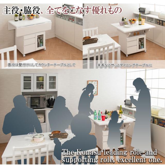 キッチンカウンターとして、壁際に置いて邪魔にならずに使えて、大変便利です。