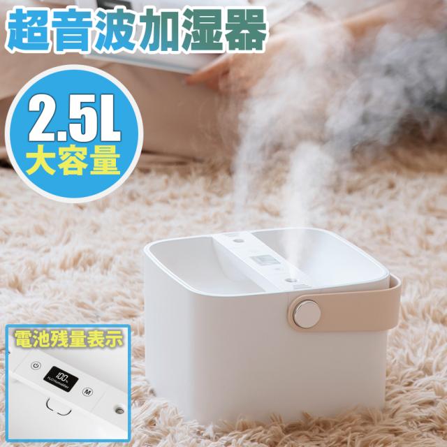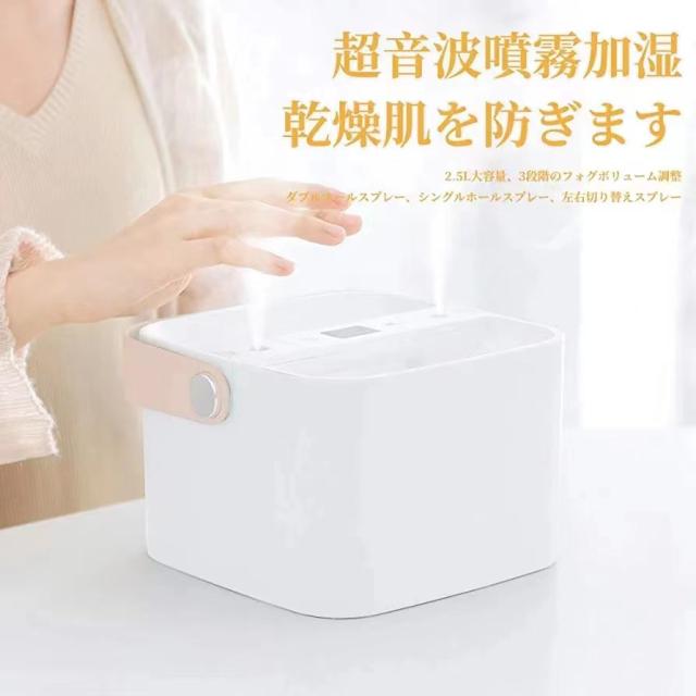 加湿器 卓上 超音波 小型 2.5L LEDライト 2WAY給水 アロマディフューザー 超音波式 大容量 除菌 空気清浄 2段階ミスト量 霧方向 調整可能 電池残量表示 静音 空焚き防止機能 省エネ アロマ対応 乾燥対策 家庭/オフィス/学校/幼稚園などに適用