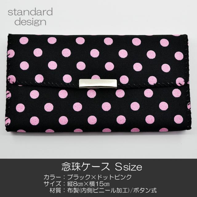 念珠ケース Sサイズ 創価学会数珠ケース 数珠袋 068 ブラック×ドットピンク 布製 創価学会用 SGI SOKA